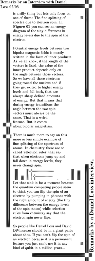 I took the freedom to make a few screenshots and in the middle of the image below you can see David has strong mathematical fantasies about how such spin qubits should behave. Well David, if you ever read this: Likely they won’t do that in a billion years.